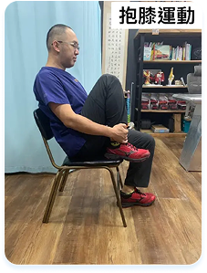 - 彎曲一腿,用雙手抱膝輕拉向胸口