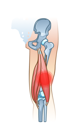 膝蓋後方有一群肌肉叫做膕繩肌,這組肌肉在跑步或用力蹬地時承受過大壓力,導致拉傷或撕裂。若是舊傷未完全恢復,長時間的勞損會累積成慢性疼痛,使不適感持續存在。