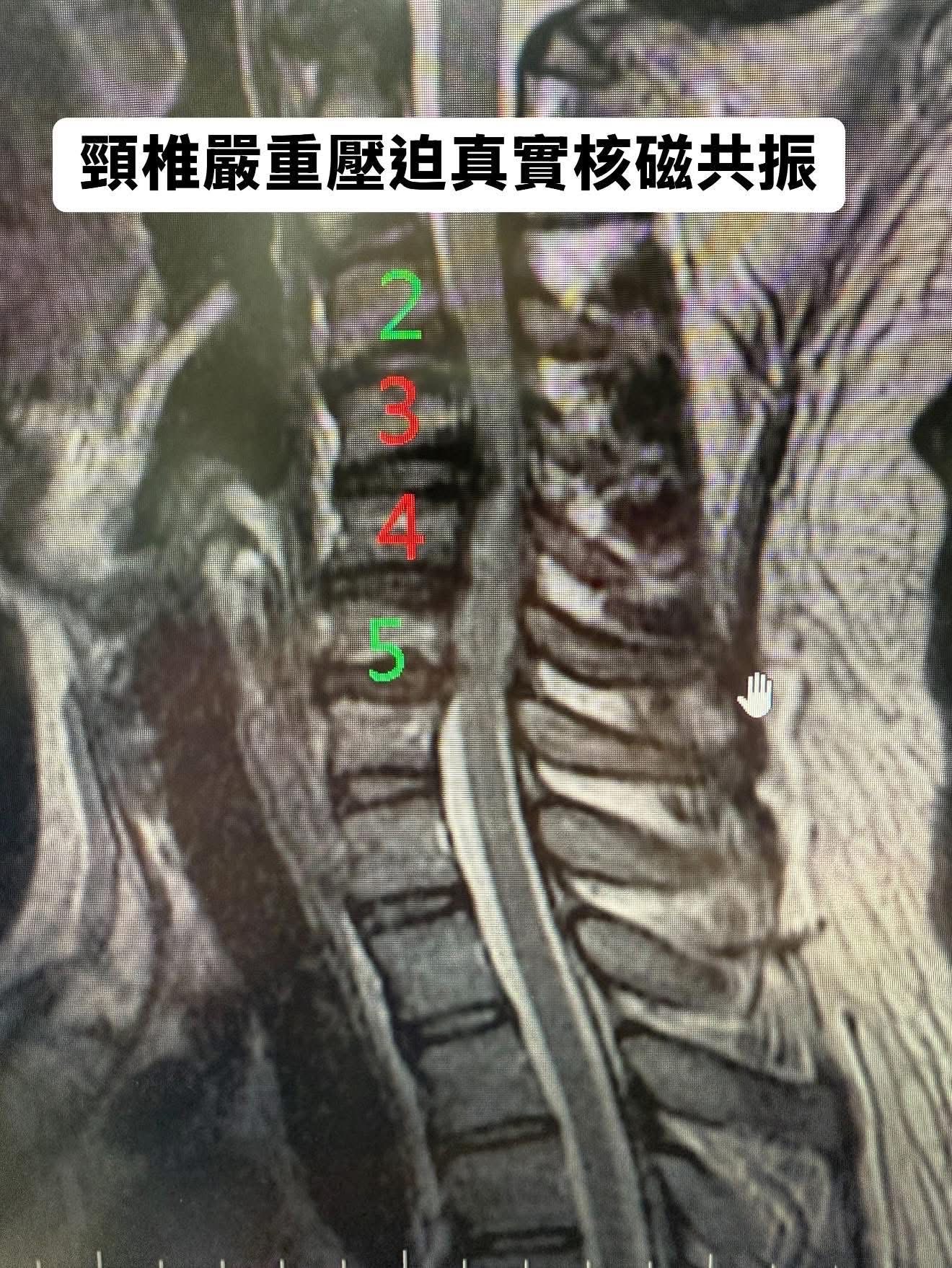 • 病灶位點: C3/C4、C4/C5、C5/C6 多段式椎間盤突出。