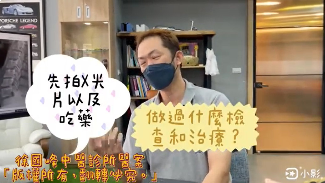 ⭕️本文案例均已經過當事人同意刊登露出,並經患者同意拍攝照片、影片上傳。 ⭕️本文為案例資訊,僅作為推廣真刀醫學療法衛教資訊之介紹分享,治療效果會因個人體質與術後保養而有異。 ✨徐國峰醫師提醒您,任何醫療處置均有潛在風險,並非每個人都適合,本文內容僅供參考。 ⚠️實際須有醫師當面與您進行評估及溝通而定。 🤔有相關問題請就近洽骨科、復健科、針灸醫師,及早發現及早治療。 🌹徐國峰中醫診所關心您