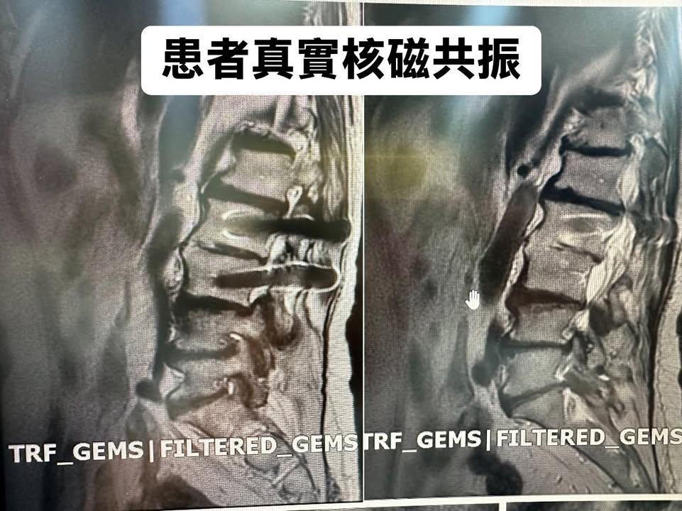 蔡阿姨從不輕言放棄。儘管腰椎的酸痛不斷加劇,她依然日復一日地忍耐,期望疼痛能夠自然消退。然而,情況變得越來越糟,直到112年4月21日,她幾乎已無法正常行走。來到我的門診時,她臉上帶著倦意,背著沉重的身體,冷凍疼痛分數達到8分,幾乎每天都需要依賴止痛藥才能勉強度日。