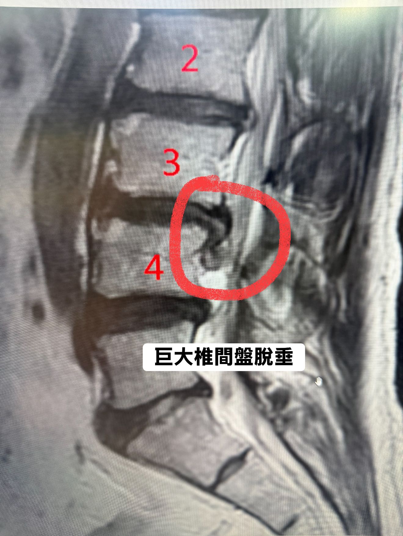 主角是一位理性而內斂的工程師,工作上精準冷靜,生活中邏輯至上。今年二月,他前往日本滑雪,卻在一次重摔中造成腰椎劇烈傷害。返國後的 MRI 顯示:L3/L4椎間盤破裂並脫出,壓迫神經根。臨床症狀典型且嚴重:坐骨神經痛、單側下肢麻木、反射異常、夜間抽痛,排尿頻率改變。