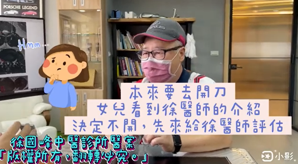 ⭕️本文案例均已經過當事人同意刊登露出,並經患者同意拍攝照片、影片上傳。 ⭕️本文為案例資訊,僅作為推廣真刀醫學療法衛教資訊之介紹分享,治療效果會因個人體質與術後保養而有異。 ✨徐國峰醫師提醒您,任何醫療處置均有潛在風險,並非每個人都適合,本文內容僅供參考。 ⚠️實際須有醫師當面與您進行評估及溝通而定。 🤔有相關問題請就近洽骨科、復健科、針灸醫師,及早發現及早治療。 🌹徐國峰中醫診所關心您