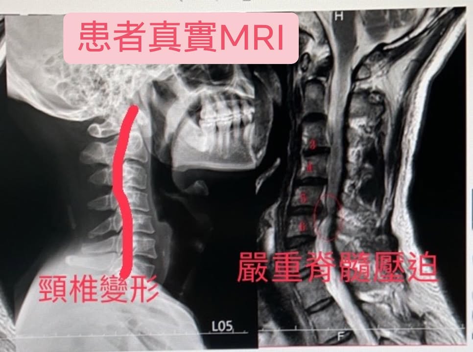 🟡醫案敘述:葉老師在診前已經有長達快一年的不舒服,密集去復健科復健但可能效果不如預期,來診前頸椎壓迫導致的手麻痛無力已經非常困擾他的生活,曾在當地某大醫院諮詢過兩位不同的骨科醫師,醫師看過MRI片子都表示很嚴重,可能需要開刀,當時葉老師已經痛到一天需要吃四到五次的止痛藥,有些還是管制類的藥物,但病情沒有特別大的起色,又擔心手術的副作用跟後遺症,經同校數學老師陳老師的介紹來門診就醫