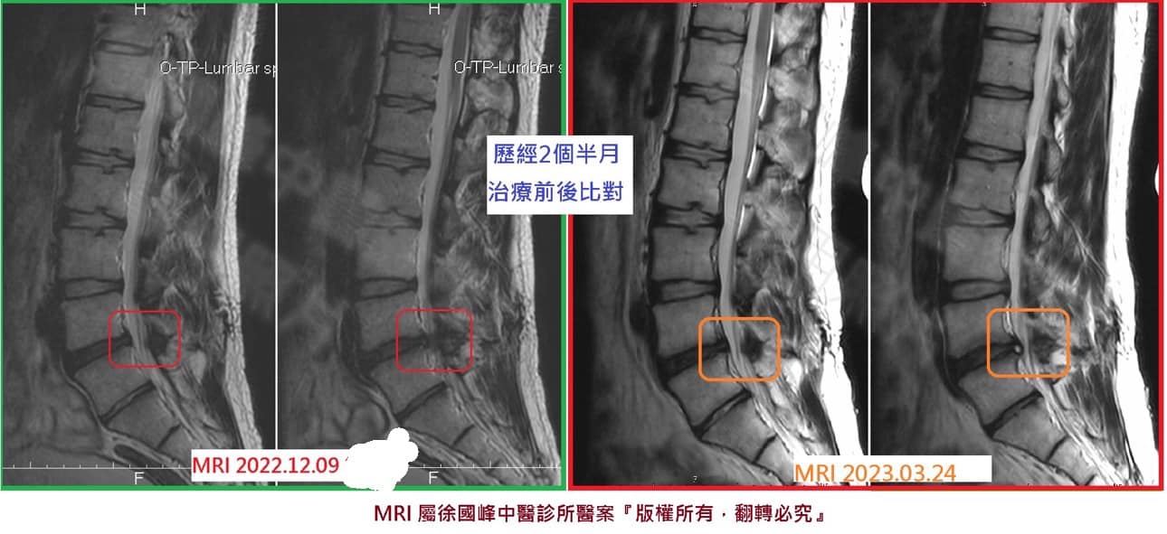 🍀來診所治療的第四週感覺最明顯,因為自己本身是在做西式餐飲業,所以需長時間站著工作,本來以為會一直反覆疼痛,但治療後明顯腰椎疼痛感減緩很多,直到治療到第十週,基本上已達到9成的好轉,不用再把手術當第一選擇,真的是太開心了!!