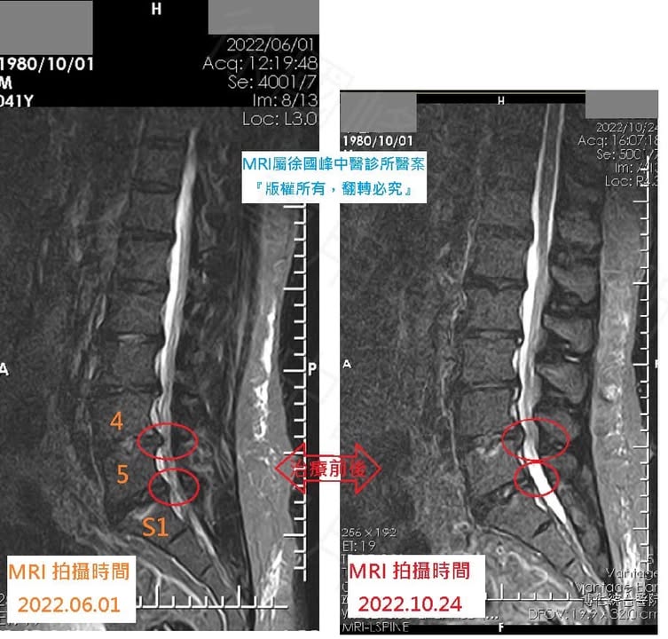 「先說結論,椎間盤突出會不會吸收,會!!但不是每一個人都有這種效果,但是如果患者接受完治療後,症狀已經全部消失,然後再去同一家醫學中心安排核磁共振後,結果出現以下的場景」
