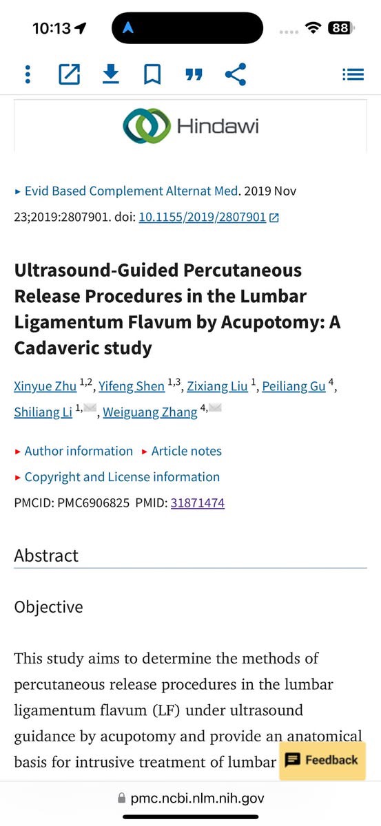→ 回應:針刀並非傳統針灸,也非民俗療法,而是一種經過臨床驗證、具有解剖依據的「微創軟組織鬆解術」。在超音波與MRI輔助下,更能做到精準對位、不傷脊髓、不用全身麻醉,傷口甚至不用縫合因為只有0.4-0.6MM(等於0.04CM!)