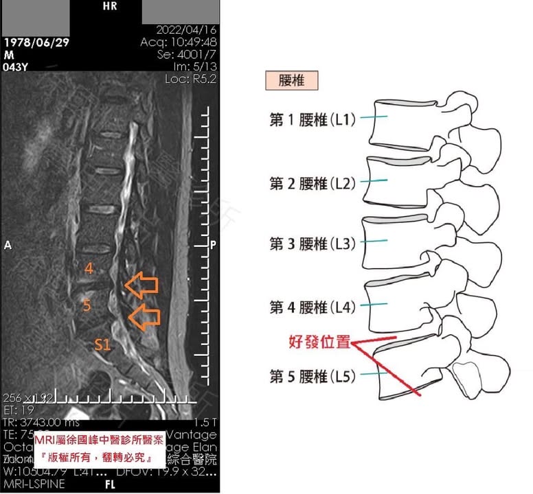 1.左側L4L5;L5S1 中重度椎間盤突出