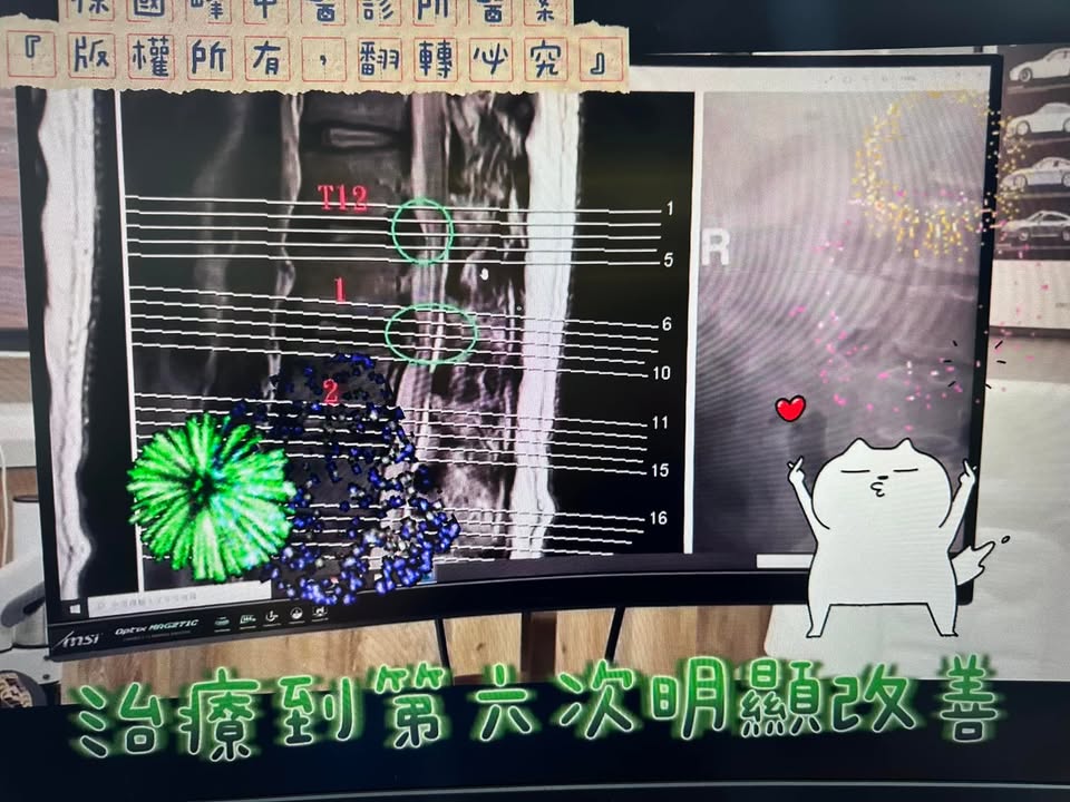 困難點:T12/L1,L12這種高位腰椎很不好治療,治療的時候要非常小心絕對不可以針到腎臟不然就完蛋了。