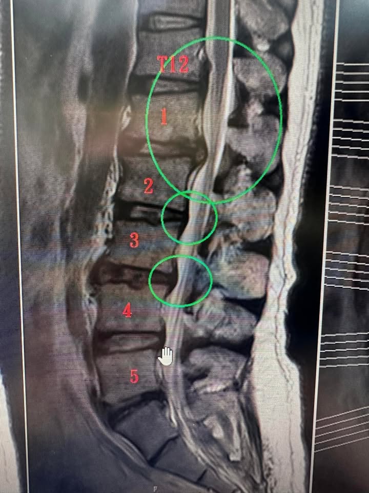 總結:T12/L1,L1/L2/L3/L4/L5全部中,實在有點太慘,難怪他當初去復健搞超久了將近半年的時間幾乎每天去,效果很少⋯⋯⋯⋯