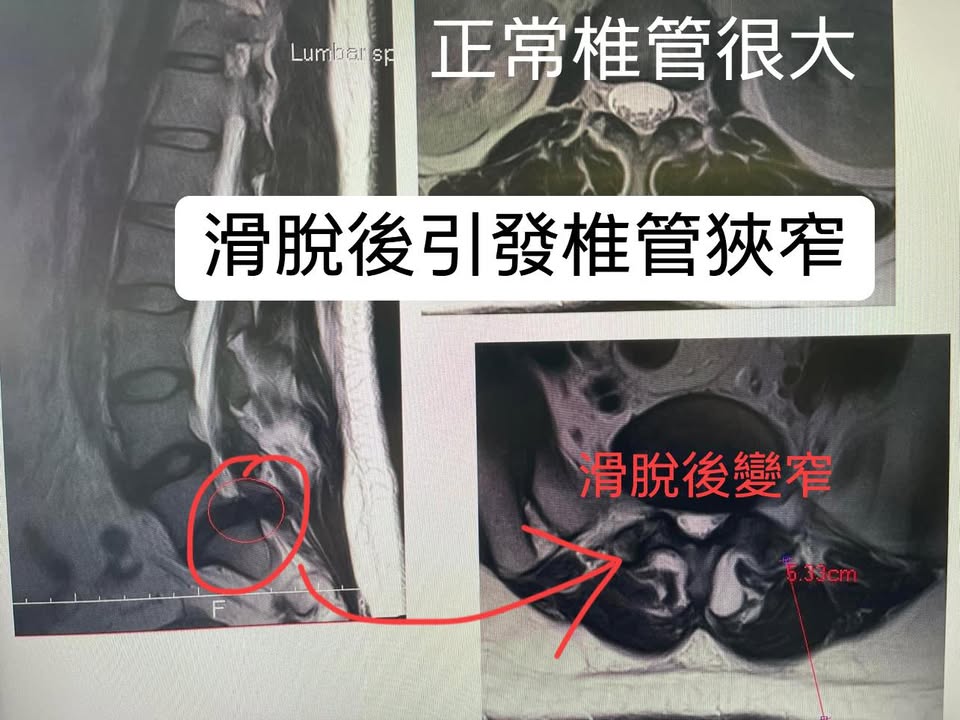 ⭕️核磁共振證實滑脫之後引起椎管狹窄