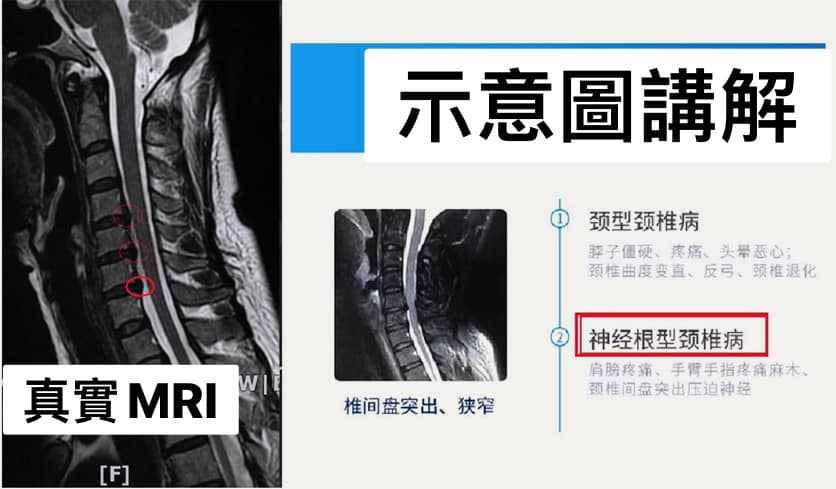 疾病探討:頸神經根病變最常見的原因是頸椎間盤突出和頸部關節黏連(spondylosis)最有關!