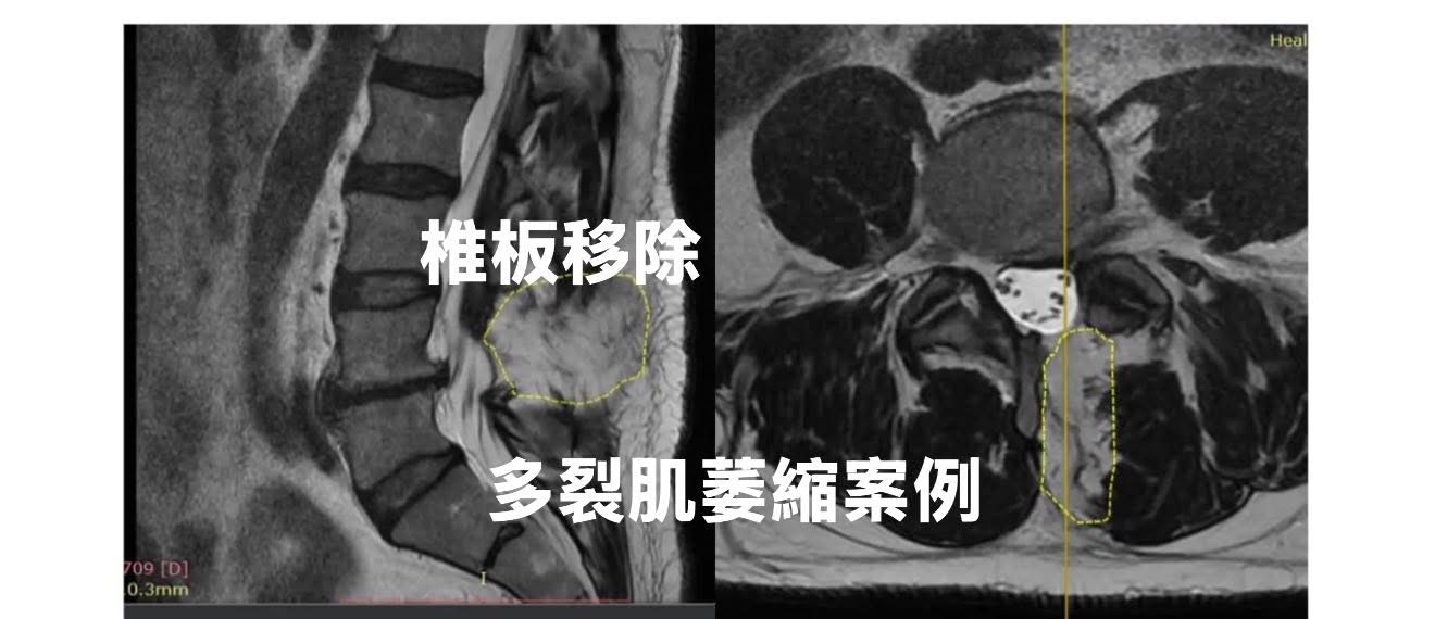 • 這不是在描述硬膜外纖維化(epidural fibrosis),而是後柱穩定肌群(multifidus 等)的手術後損傷。