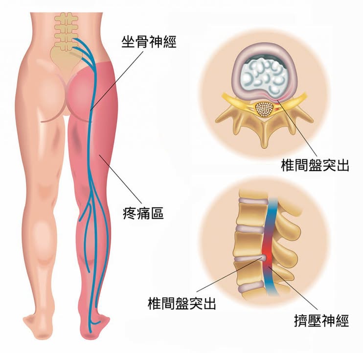 椎間盤突出影響範圍包括整個腰部、臀部與下肢,會出現神經刺痛、肌肉麻木感,也就是我們常說的腰痛、下背痛或坐骨神經痛,少部分病人會有下肢無力感,嚴重時甚至引起大、小便失禁或排尿困難。