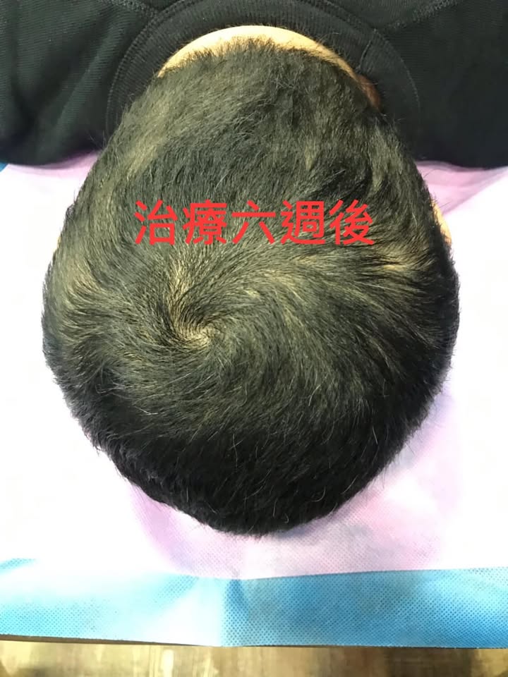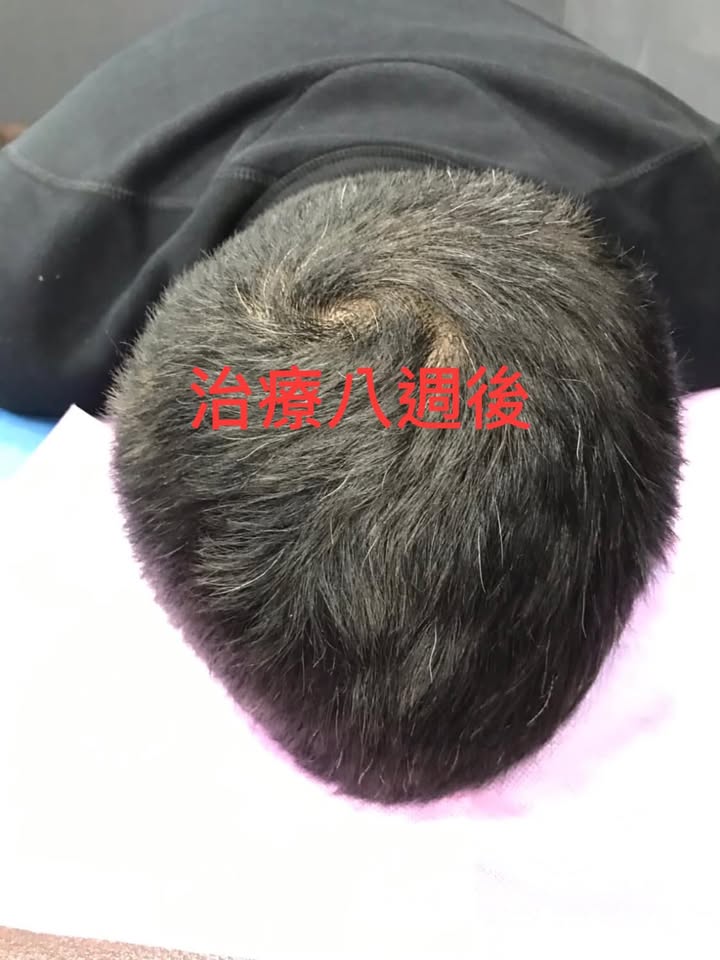 🎦醫案照片實錄:從患者第一次來到最後一次治療總共兩個月的治療,事實上第一個月就看到快四成頭髮長回來,到第二個月幾乎長回九成的頭髮,效果非常滿意