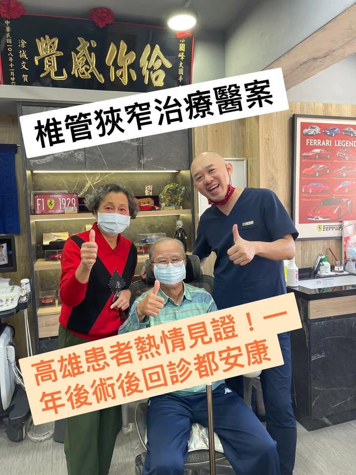 🧐這個案例印象深刻,八十多歲的莊伯伯遠從高雄來就診,來診前痛苦到臉上完全憂鬱,幾乎是寸步難行,年輕的時候對於自己的體格非常驕傲,每天都可以去游泳,甚至是海泳,根本沒想到自己有一天要拿著拐杖走路,最嚴重的時候連一百公尺都寸步難行,在高雄當地醫學中心拍攝MRI後,發現明顯椎管狹窄,外科建議可以開刀,但是老人家一想到後面的漫長復健跟可能的副作用就猶豫了,經過兒子跟媳婦介紹特別從高雄北上,第一次門診完整的諮詢之後,我判斷莊伯伯無法走路的原因是因為椎管嚴重狹窄,但如果要不想開大刀,勢必同時減壓跟訓練肌肉兩大方向一定要一起做,約定四周治療,如果有效果繼續,如果改善不多,可以考慮給神外或骨科做手術