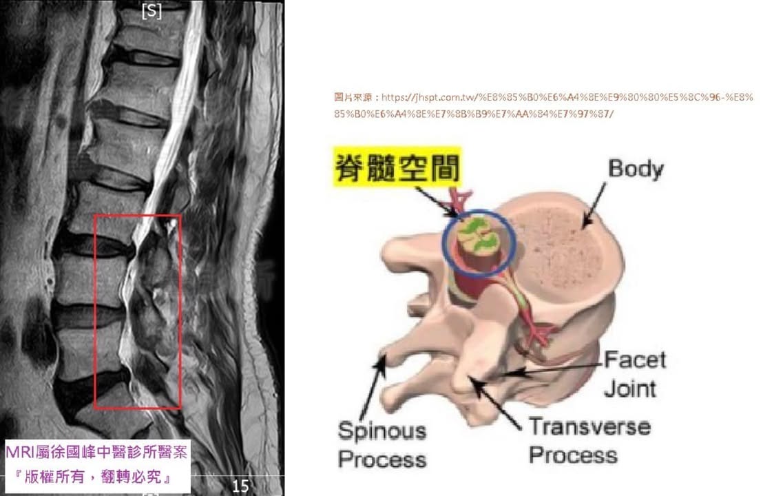 🔴一般來說,單純的脊椎狹窄壓迫神經,是因為長期彎腰導致脊椎兩旁的黃韌帶(ligamentum flavum)肥厚增生進而壓迫到神經,只要未伴隨脊柱嚴重滑脫,通常只要將黃韌帶減壓,讓神經不再受到壓迫即可,之後訓練患者核心肌群,讓筋膜當作自己的最強骨架,原則上開刀是最後最後要選的路。