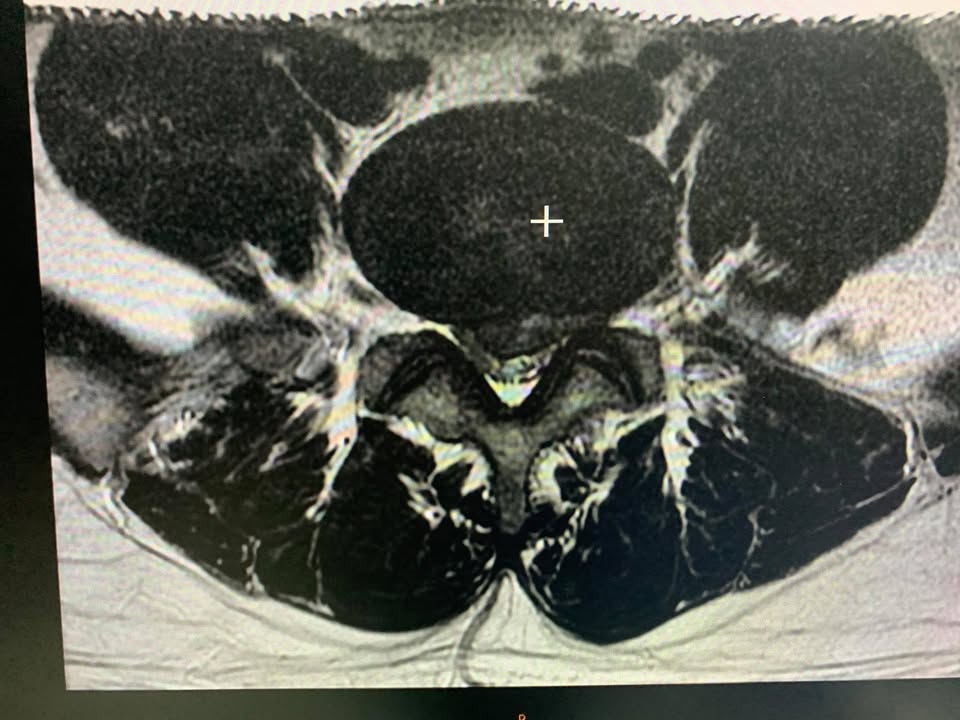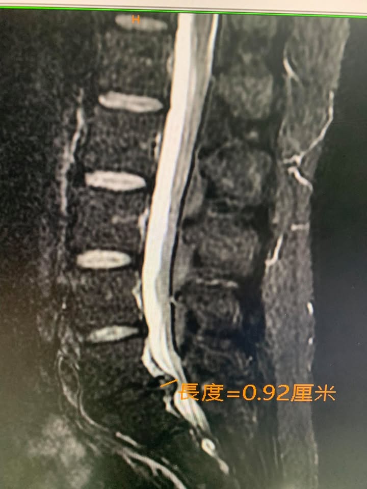 😂高強壯大的駱先生抱怨腰痛連小腿外側跟腳踝,痛了快半年,最近一個月嚴重惡化,走一兩百公尺就需要坐下來休息,右腳踩步明顯跛行,直腿抬高測陽性反應,加強測試會痛一下,墊腳有一點無力,經台北醫學院核磁共振mri證實L5S1中央型巨大突出,來診時已痛苦不堪,所有的椎間盤理學檢查幾乎都是陽性反應,因為患者畏懼開刀所以嘗試脊椎中醫微創療法,治療五次幾乎改善九成以上,非常開心替針刀醫學療法見證,真心恭喜駱先生,並且囑咐這次治療好之後要認真加強下背核心肌群