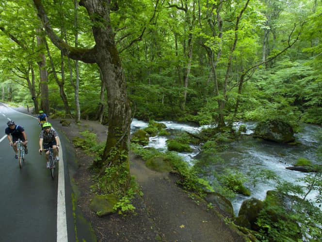 由各式各樣的岩石、樹林以及瀑布和溪流構成的全長14公里的奧入瀨溪流。沿著國道102號線行駛,沿途都是溪流,穿過宛如樹林隧道一般的感覺最令人心情舒暢。在石戶稍作休息後,可以欣賞湍急流淌的「阿修羅之流」、斷崖分成三段的「雲井瀑布」、溪流最大的「銚子大瀑布」等壯麗的自然景觀。另外,也被稱為隱花帝國而廣為人傳,同時,也作為漫步景點而頗具人氣。苔蘚和蕨類植物覆蓋著森林,用放大鏡仔細觀察,發現那可愛的生態之美,不由自主的發出感嘆。走出子之口,終於抵達可以窺見十和田湖的最後衝刺階段!