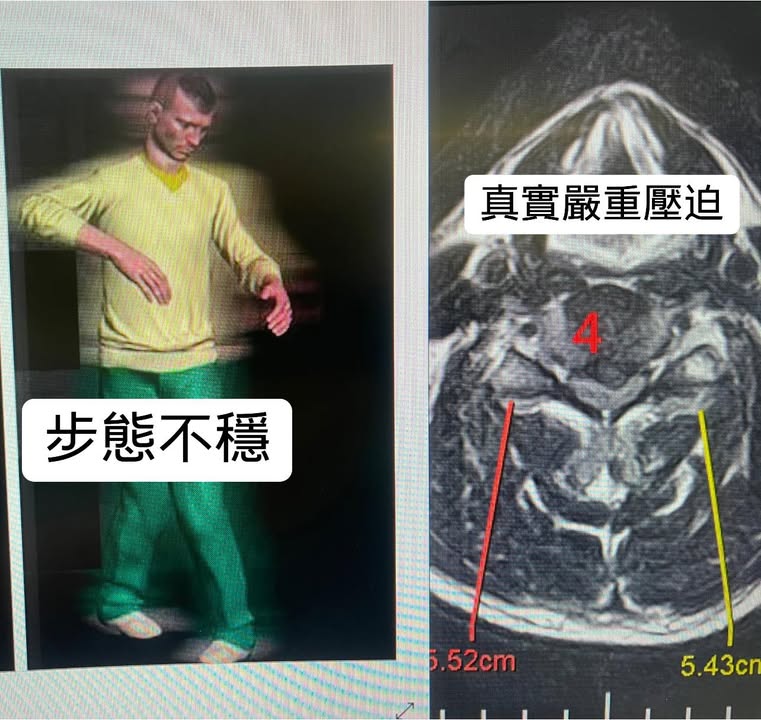 #嚴重頸椎脊髓壓迫引起下肢步態不穩伴隨雙手雙腳無力