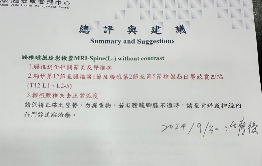 江先生,50出頭,一個原本活力滿滿的大叔,怎麼也沒想到有一天會被自己的椎間盤給“打敗”。當他來到診所時,滿臉痛苦,彎著腰走路就像是背著一座山。江先生當時的狀況不容樂觀,椎間盤突出加上骨刺雙重壓迫,報告上清楚寫多節椎間盤突出跟退化!讓他疼得不僅無法正常走路,連開車也成了奢望。這樣下去別說旅遊了,連去樓下買個豆漿都成了挑戰。