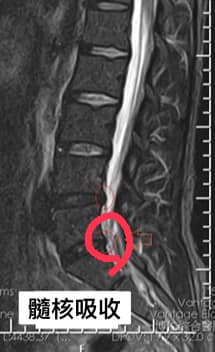 一年後,這次因為另外一條腿也有一點酸麻,有前車之鑒就趕快回門診治療,原本以為是之前的舊傷又復發,再拍攝一次MRI,沒想到意外發現原本L5/S1突出髓核已經吸收回去。