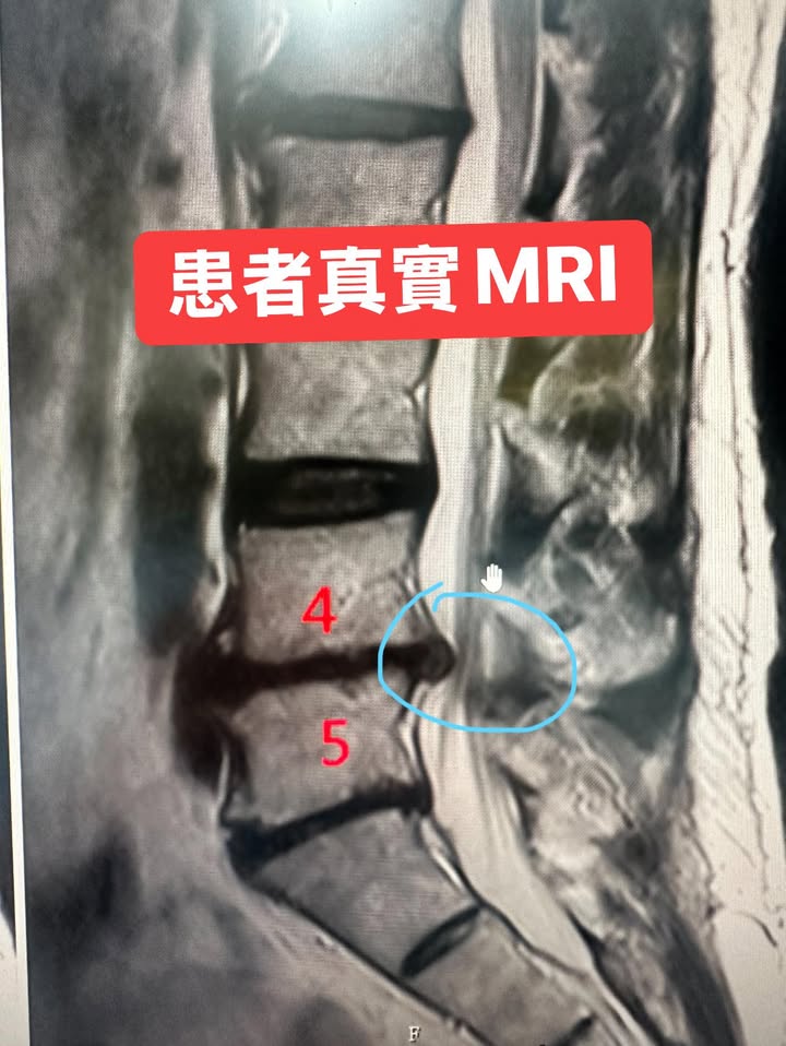 陳大哥,新北汐止人,年約五十多歲,某次搬運重物後突然刺痛一下,不以為意也無就醫,此後腰椎時常感覺酸痛,腰椎便已有隱隱作痛之症狀,惟陳大哥以為勞累所致,未曾正視此問題。疼痛持續多年,並未加劇,直到2024年5月底,一次搬重物後,腰椎突然劇痛,且疼痛蔓延至右腿,導致行動困難,整條右腿幾乎無力,日常生活大受影響。陳大哥試圖以止痛藥緩解病情,然藥效不顯,一日三次止痛藥亦無濟於事,生活質量顯著下降。