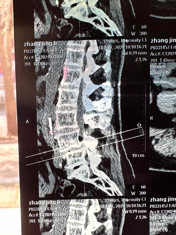跟了一整天的門診刀,碰到好幾個平常在台灣看到症狀非常嚴重的患者,只是場景轉變為他們從全國各地跑來湖北的感覺,印象最深刻是六十多歲阿姨,椎管嚴重狹窄合併腰椎滑脫與椎間盤突出🤣,幾乎是最嚴重的病全部都得了,第一次來門診,走路幾乎跛行,夜晚痛到睡不著,患者說大醫院開刀至少台幣四十萬起跳,馬上聚精會神在這個初診案例,先看老師精準講解片子,我剛好跟老師在討論患者病情與我這邊的看法,被一起跟診的台灣陳醫師拍到照片👍,捕捉到認真的態度😅⋯⋯⋯⋯⋯⋯⋯,老師使用一些很特殊的方法,嘿嘿😁!哥學會了,只能說觀念突破,有老師帶一下就懂了,不愧是刀齡五十年的針刀之神。