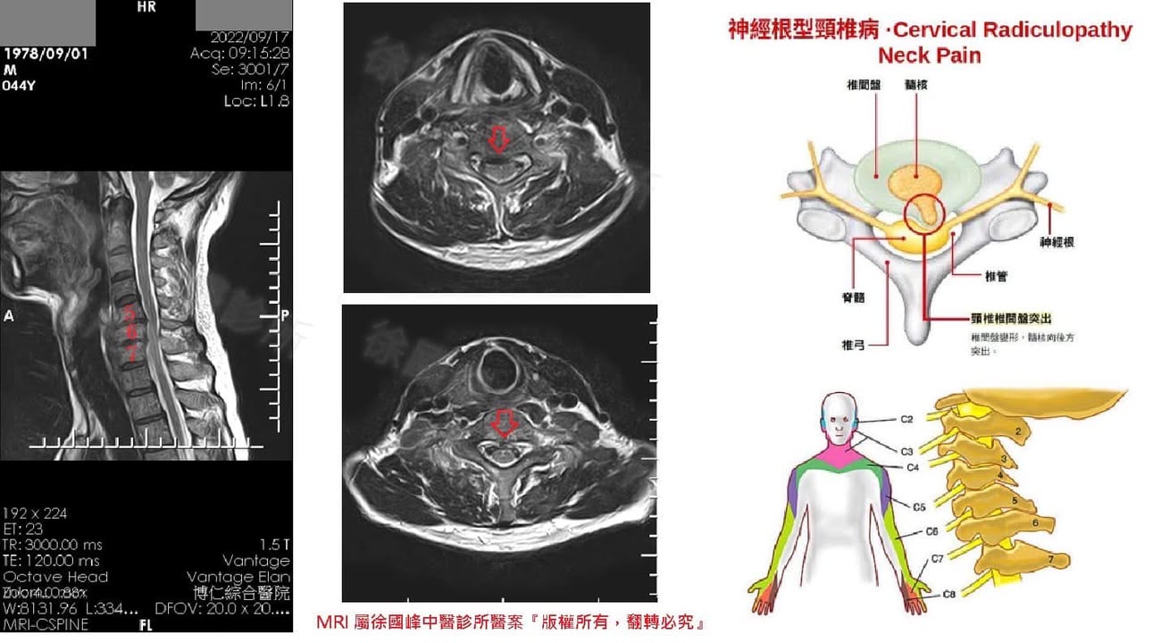 😖來診所治療前,半年內常出現肩頸僵硬、腰酸背痛及胃食道逆流,工作只要過半小時就會出現右側腰椎連至臀部大腿處痠痛,頸椎右側連至肩膀、手臂麻至小指,有時半夜還會痛到醒過來,當初也沒有開刀的念頭,只把希望放在復健治療上,效果不如預期!!這些腰頸的痠痛症狀還是一直不斷的再重複誘發,非常的不舒服