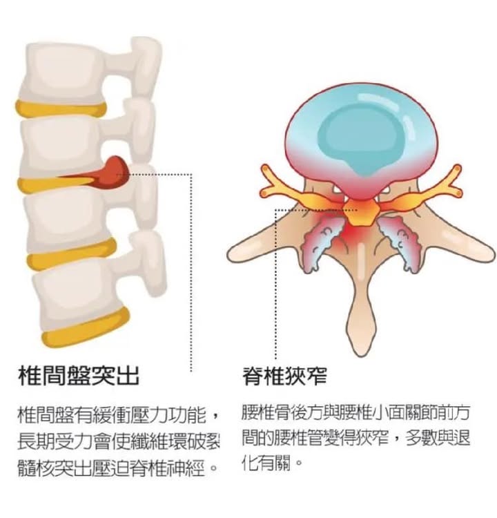 1.老化:椎間盤會隨著年齡增長而日益磨損,且椎間盤中的水分也會逐漸消失,容易讓椎間盤外殼破損突出。