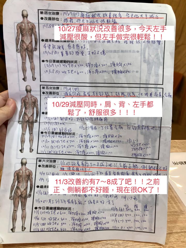 #神經根型頸椎病讓人痛到無法入眠 #感謝新店陳小姐熱情見證 #患者的疼痛日誌讓人感動 #脊椎整合中醫微創療法逆轉勝