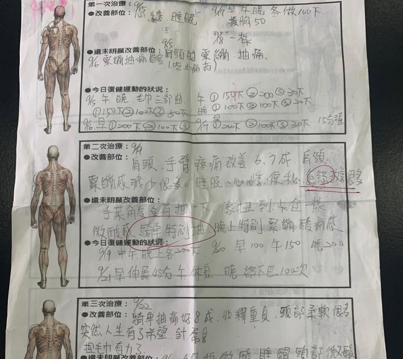 #疼痛三年頸椎病患者親手寫下治療紀錄
