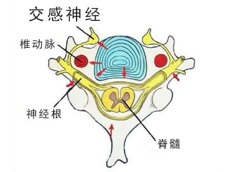 本型頸椎病是分布在頸脊神經根、脊膜、小關節囊上的交感神經纖維受到刺激所致,約占頸椎病的 10%,可與神經根型頸椎病合併存在。由於在頸椎病的各種病理變化中,均會直接刺激或壓迫交感神經末梢,或通過頸脊神經的病理反射,引起交感神經的異常興奮或抑制,即會出現相應症候群(圖片)