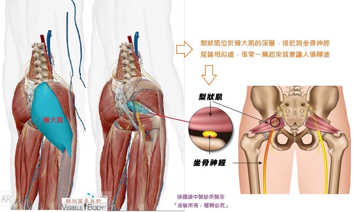 ✨ 梨狀肌的受傷原因是由於太過於緊繃,而壓迫到下方的坐骨神經,症狀越嚴重,臀部、腰部和下肢有麻麻痠痛的感覺也會越明顯,這時可以伸展梨狀肌和周圍的肌肉,減少緊繃感。