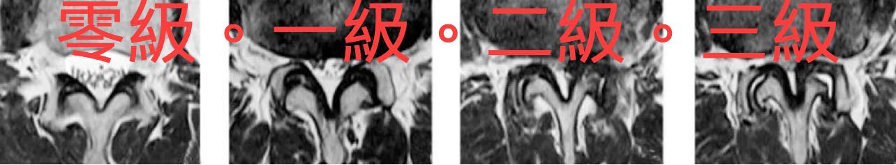 🔶根據核磁共振結果,可以看到脊椎狹窄的程度從正常到嚴重分成四級。(圖三)