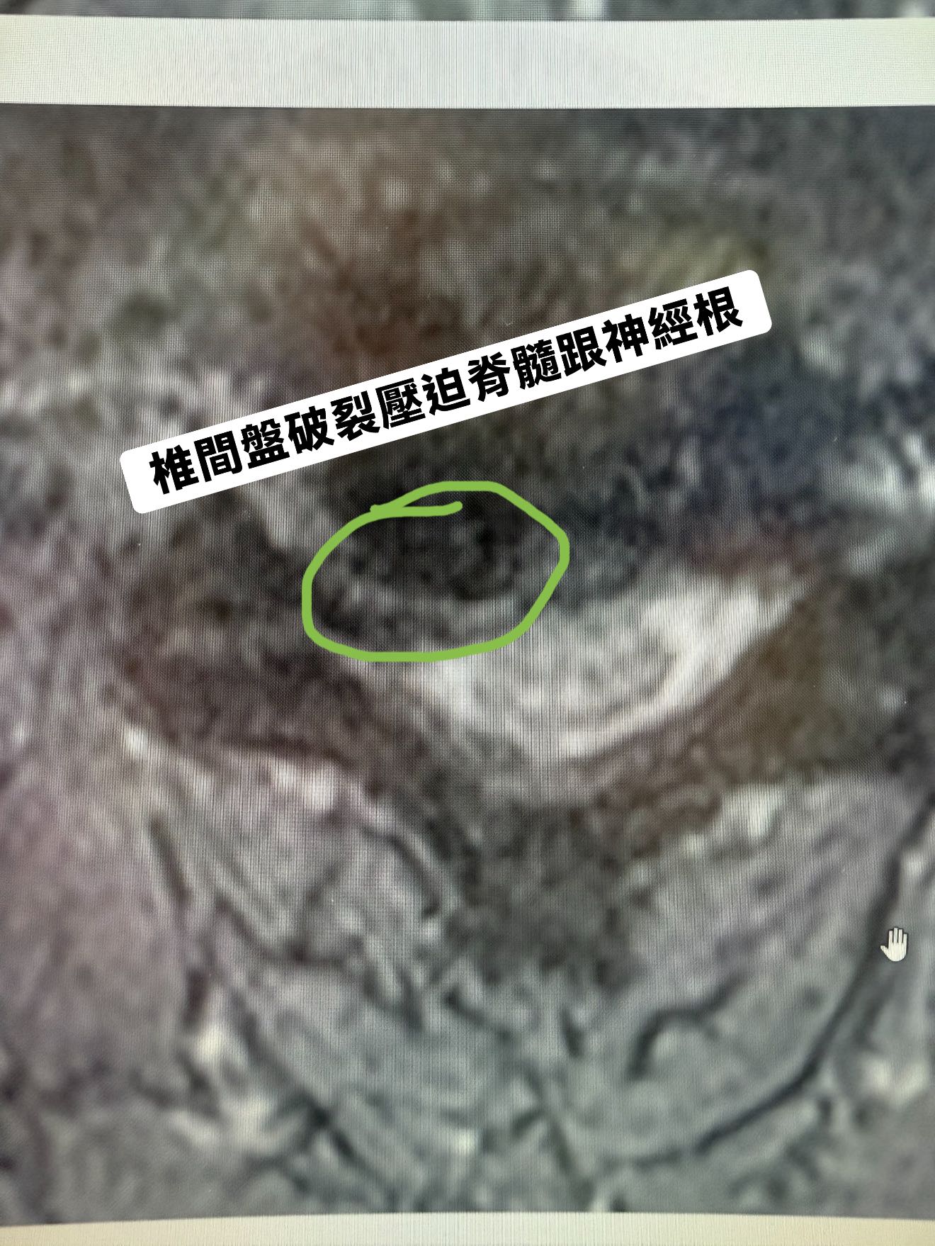 他嘗試了傳統的復健治療、打針、針灸,但一點效果都沒有。直到來到門診,我為他安排了 MRI 檢查。結果讓人不安: