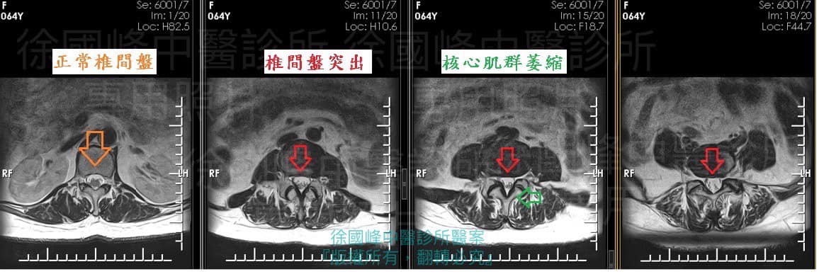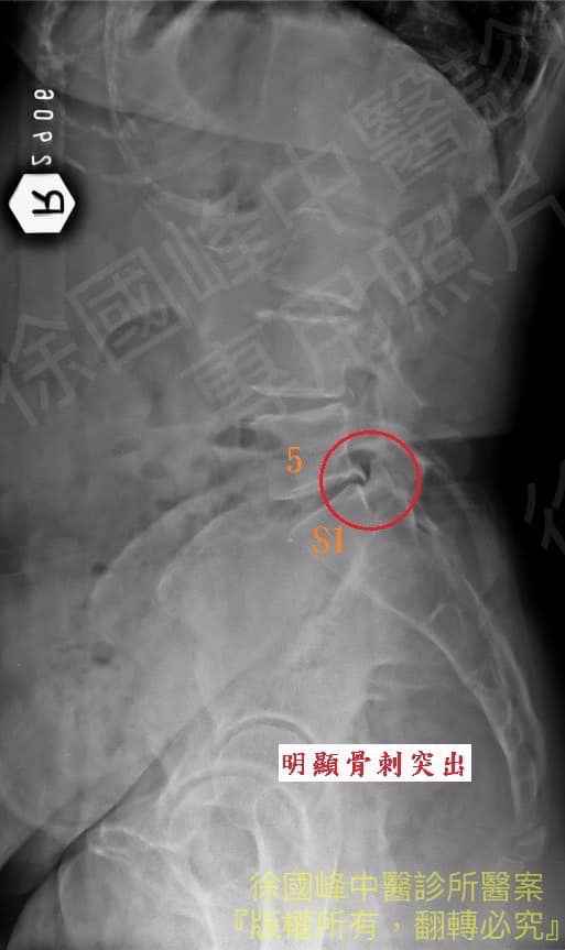 X光跟核磁共振都顯示有骨刺跟椎間盤突出,但並不特別嚴重,但為什麼會那麼痛,還痛到每天吃兩次止痛藥,答案是剛剛好卡住神經根,又發現患者髖關節張力過大,這種情況會讓患者雖然核磁共振看起來都沒有什麼大問題,但是走路一段時間會因為髖關節的張力拉扯到腰椎的腰大肌,進一步讓神經根拉扯