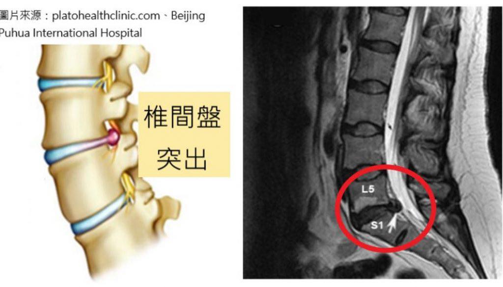 四十多歲的張先生抱怨右邊屁股痛連大腿跟腳底,腳底很麻,屁股很痛,晨起刷牙都非常疼痛,病史大約兩年多,一開始吃止痛藥有一點效果,後來最近半年吃止痛藥沒效了,之後去台北三總醫院神外拍攝MRI證實腰椎L5S1突出(以下圖片為示意圖),因為二十年前曾經在此部位開過椎間盤傳統手術,沒想到二十年後又復發了,患者畏懼開刀經過網路得知中西醫結合腰椎整合針刀療法,抱著姑且嘗試過心態,效果讓他很滿意,醫師提醒他要好好保養跟復健強化腰椎,這次改善不代表以後不會發作!