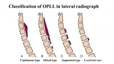 根据患者颈椎侧位片,可将OPLL分为以下四种类型: