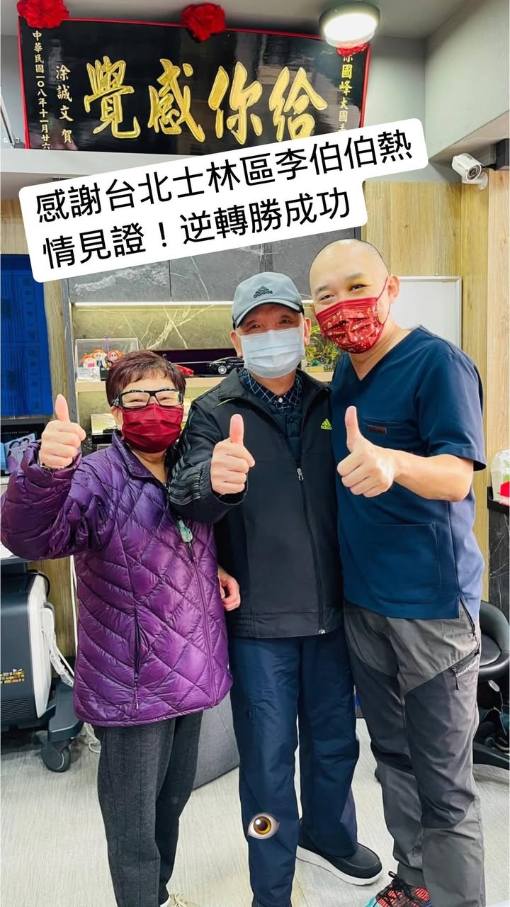 🔘後記:李伯伯從2021年11月30到2021年12/28,接受了十次的中醫微創治療跟醫師建議的運動處方,症狀消失九成,之前的麻痛只剩下很輕微,原本忠孝復興站那一段馬路有六十秒他完全走不過去,現在可以直接走過去還可以走兩個捷運站以上!!只差沒˙有忠孝東路走九遍