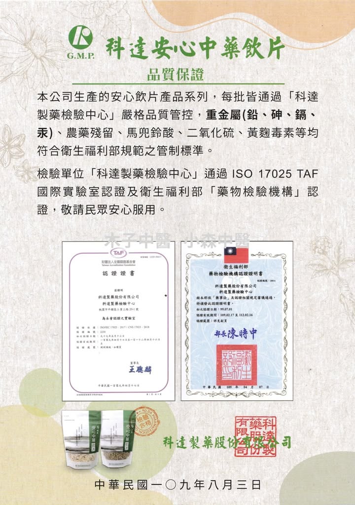 針對最近鉛中毒事件,診所在第一時間要求上游水藥廠商與藥丸藥粉廠商出具保證書,讓患者安心使用!!