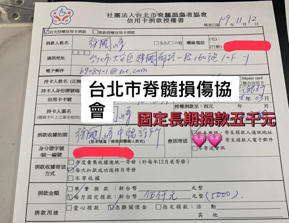 #莫忘世上苦人多略盡綿薄之力 #決定無限期每個月長期小額捐款 #台灣癌症基金會 #台北市脊髓損傷協會