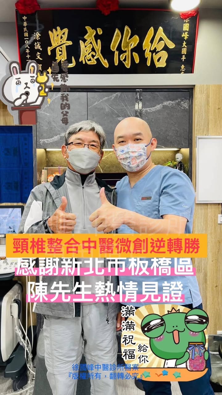Cervical Spine Treatment Cases 精彩回顧 2023年的第一天上班日,傍晚下班時拿著患者訂製的雷射雕刻威士忌酒杯,希望所有患者平... 2023.01.03 ⭕️值得喝采的一天👍。 ⭕️七週治療椎間盤明顯吸收回去。 ❗️當初走路5分鐘就開始大痛。 ... 2022.10.08 特別且有重要意義的禮物。 今天早上收到感覺很榮幸。 2022.12.30 🌀超級大驚喜! ⚠️椎間盤巨大突出患者突然拿AirJORDAN 第一代的復刻鞋說要送給徐醫師 ... 2022.11.18 前言:這是一個非常特殊且難度很高的案例,我們治療了十週,將近兩個半月的治療,患者... 2022.11.08 原來腰椎針刀是一件開心愉快的事情。 愉快的週末,從快樂屠龍刀開始。 你快樂,所以我... 2022.11.05 #耳鳴眩暈有可能是頸椎問題 #24小時處於手麻手痛的狀態 #眩暈加速惡化造成生活上的... 2022.11.16 每次患者叫的亂七八糟的時候,這首神歌突然出現在我腦海中,今天還忍不住唱出來,還被... 2022.09.23 花蓮針友粉絲林董犒賞醫療團隊,整箱十台斤起跳,分成好幾袋贈送每個護士跟徐醫師,人... 2022.09.14 麝香貓咖啡❤️。 腰椎患者自行從國外進口生豆,自己烘培,也沒有販售,就單純只分享給... 2022.09.15 ⭕️值得喝采的一天👍。 ⭕️七週治療椎間盤明顯吸收回去。 ❗️當初走路5分鐘就開始大痛。 ... 2022.09.30 脊椎健康值錢嗎? 2022.09.13 遠從西班亞馬德里飄洋過海的感謝函。 患者深受椎間盤突出痛苦。 五週搞定!直接原計劃... 2023.01.13 謝謝各位粉絲的中秋節禮物,我會好好珍惜,慢慢吃,慢慢喝🥃,感謝大家,預祝中秋佳節... 2022.09.02 #超嚴重頸椎壓迫案例 #原本已經準備開大刀了 #最後一刻臨時取消大刀是怎麼回事 #來診... 2022.08.12 ← 上一頁 1 2 3 4 5 下一頁 →