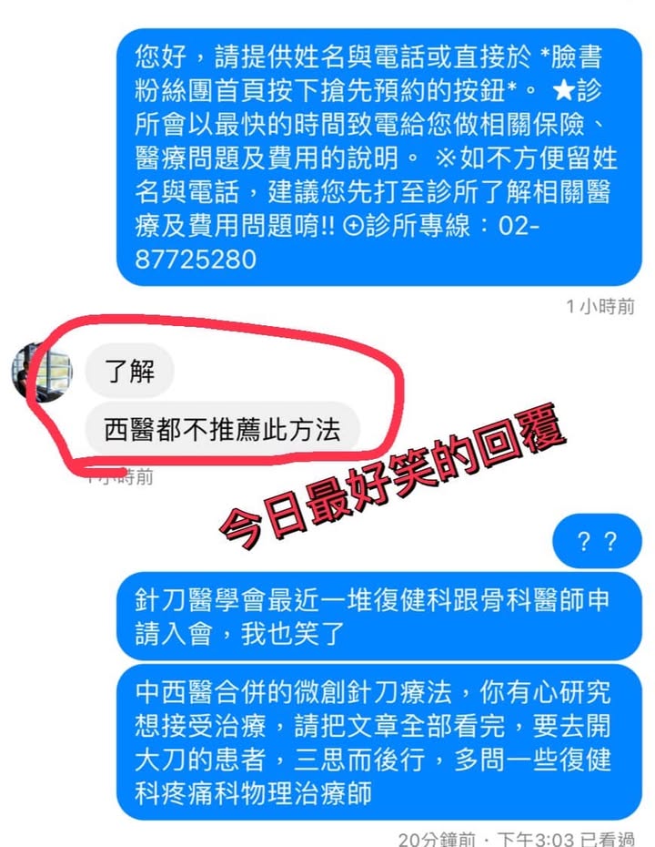 Cervical Spine Treatment Cases 精彩回顧 夜訪「送子觀音」不孕症權威。 2022.06.05 行醫快十年,第一次收到特別的禮物。 2022.05.11 🔘感謝台灣股王某科技業副總經理,超生動活潑的五星評論,我差點感動到哭了,還有藏頭... 2022.05.10 頸椎神經根病變患者,寫的特殊的回饋。 居然直接素描我的樣子!!留下評論 💪💪💪屌針... 2022.04.09 想到當年推廣超微針刀的照片 2022.04.13 我想說的是脊椎整合中醫微創雖然很屌!很厲害!救了很多人免於開大刀👍。 but,but,but... 2022.02.16 大安森林公園吃飽飯後閒晃,碰到中醫界扛 壩子!! 全聯會中醫師公會理事長,陳旺全醫... 2022.03.15 為了救他(椎間盤巨大突出患者),來診前已經無法趴跟躺,只能用很怪異角度斜躺在治療... 2022.02.12 這不是葉佩雯😂。 不是第一次也不是最後一次。 怕燙就不要進廚房。 常在河邊走那有不... 2022.01.27 #頸椎後縱韌帶鈣化醫案 #右手小指痠麻脹痛且失去精細動作 #膏肓疼痛到肩膀走竄到右手... 2021.08.05 世界多小!! 2022.01.17 謝謝針友贈送的特製春聯。 特別委託書法老師按照我的名字揮毫。 原本想說春節再貼就好... 2022.01.26 #感謝台北市糕點公會高理事長贈送禮物 #遠近馳名法蘭司禮盒人情滿滿 #高理事長介紹很... 2022.01.23 哪種姿勢造成腰椎間盤最大的壓力? 2021.12.30 #每天都會收到這種消息 #徐醫師沒有反對開刀 #反對的是不必要的大刀 #網路隨便打腰椎... 2021.12.16 ← 上一頁 2 3 4 5 6 下一頁 →