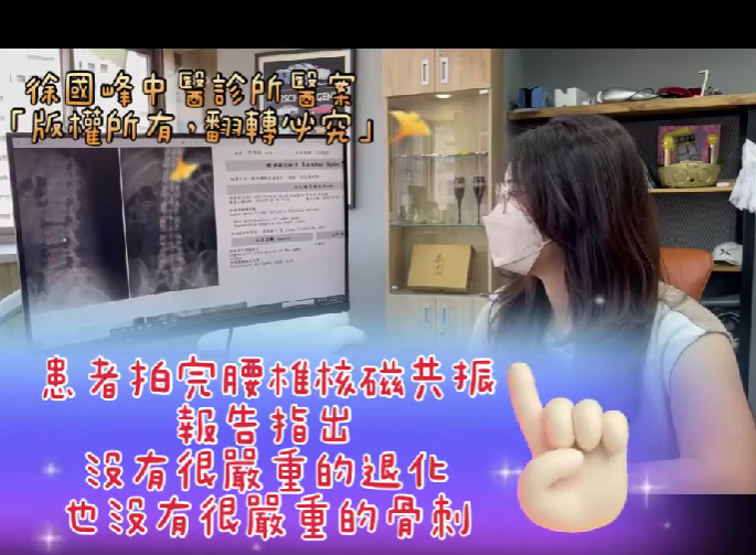 Cervical Spine Treatment Cases 見證影片 腰椎連至臀部直達腳底會痛麻。吃過藥做過各項治療效果不如預期,歷經八周密集治療 走2步必需休息止痛藥無效,做過各項治療效果不如預期,多位西醫醫生建議需手術 椎間盤突出脫垂醫案,無法走路只能躺著,西醫建議需手術不然會萎縮或大小便失禁 西醫建議需手術不然逃不過坐輪椅的命運,努力配合密集治療大逆轉 臀上皮神經合併梨狀肌症候群醫案,臀至腳都出現發麻熱刺症狀,竟是產後不舒服.... 行走必須由家人協助,歷經兩個月的密集治療,逃過一刀的艱辛路程 走路不便出現腿麻症狀,西醫建議手術,脊刻救援逆轉勝 常常出現肩頸僵硬,晚上睡覺常常出現酸麻問題,歷經6周治療 後縱韌帶鈣化,眩暈是因為頸椎壓迫引起?為什麼眩暈頻率嚴重頻繁發生? 遠從台南北上就醫珍貴醫案,突出合併梨狀肌症候群醫案,歷經8周治療逆轉 落診後出現嚴重的手麻,各大醫院醫生建議手術,本安排好接受手術竟大反轉逆轉全勝,帶... 頸椎變形合併神經根型頸椎病,頸椎轉頭角度受限合併手麻電流,出現心悸及眩暈一直發作... 痠痛引領出陰晴不定的心情,其一頸椎病為什麼要防患於未然,歷經2個月治療逆轉 小腿出現麻腳趾無力會陰部,一分鐘了解盤突出有哪些常見症狀,密集治療約八週逆轉勝 走路痛到只能拿拐杖做相伴,醫師如何診斷出腰椎管狹窄症?核心肌群重要嗎? ← 上一頁 14 15 16 17 18 下一頁 →