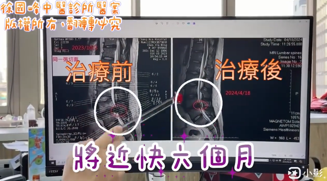 Cervical Spine Treatment Cases 見證影片 車禍造成後遺症,長期性偏頭痛,#頸椎變形合併神經根型頸椎病#👈逆轉 雙腳常出現夜半抽筋無法入睡,西醫不建議手術,#腰椎滑脫醫案# #椎間盤突出醫案#,運動打壘球意外受傷 術後應力向上導致突出,上舉出現手無力,#頸椎術後沾黏合併上節突出#,歷經1個半月的... 歷經17次的密集治療👈大逆轉 #滑脫50%合併輕微壓迫馬尾神經症候群# #下背手術失敗綜合症候群合併狹窄醫案# 走站都維持不久,#術後沾黏#,無法順利往前彎腰,歷經十次治療👈逆轉 一天三次止痛藥無效,疼痛只能打啡才有效‼️神經根型頸椎病醫案 打骨釘後應力向上移動,#歷經2次手術嚴重術後沾黏醫案# 患者MRI治療前後比對,#巨大椎間盤突出合併垂足#👉閃亮登場大逆轉 西醫建議換到兩節椎間盤,術後會有那些後遺症? 莫名其妙的高血壓竟查無原因,#交感及神經根型頸椎病# #椎間盤突出合併脫垂醫案# #頸椎變形合併脊髓型頸椎病醫案#,手根本抬不起來,無力症狀約兩個多月 突然痛到無法行走,只能一跛一跛慢慢前行,#中重度椎管狹窄醫案#👉逆轉勝 ← 上一頁 4 5 6 7 8 下一頁 →